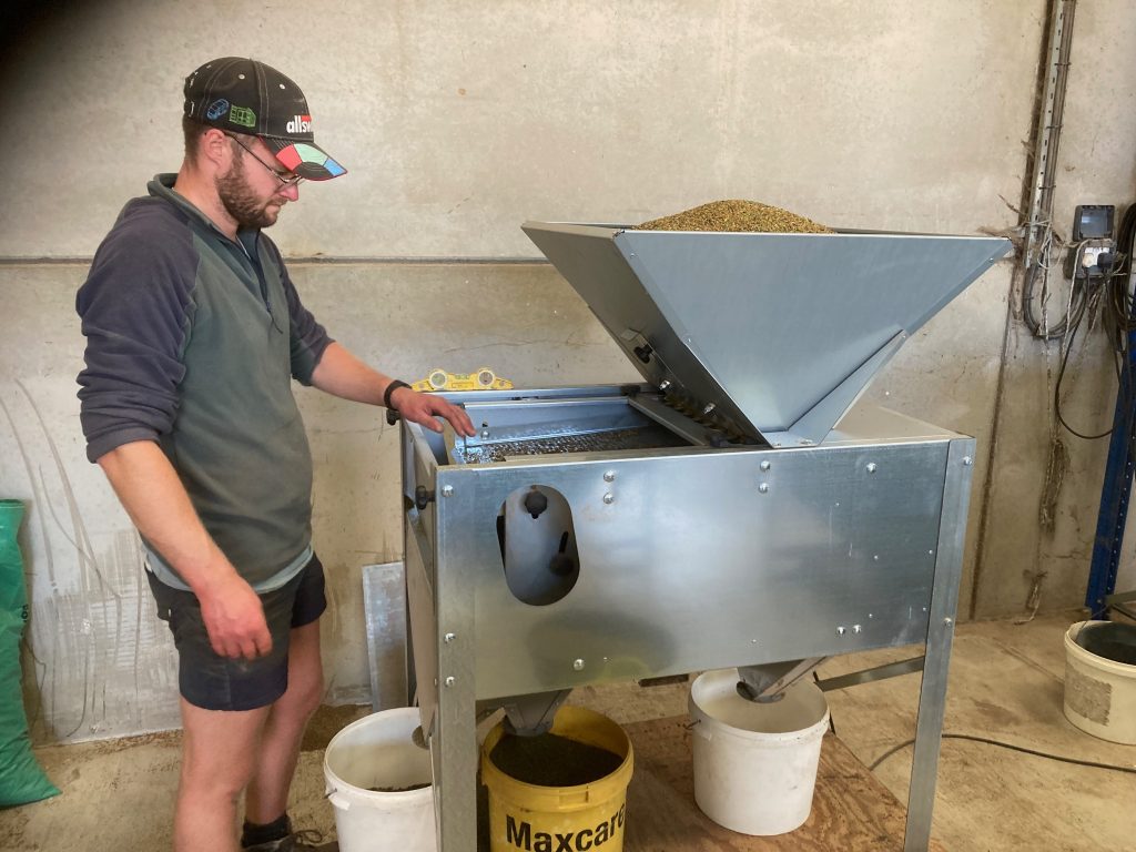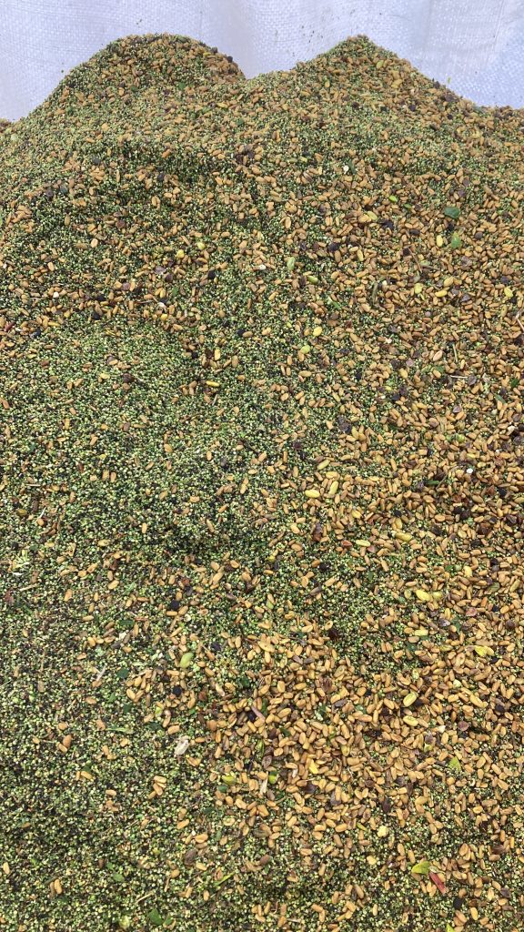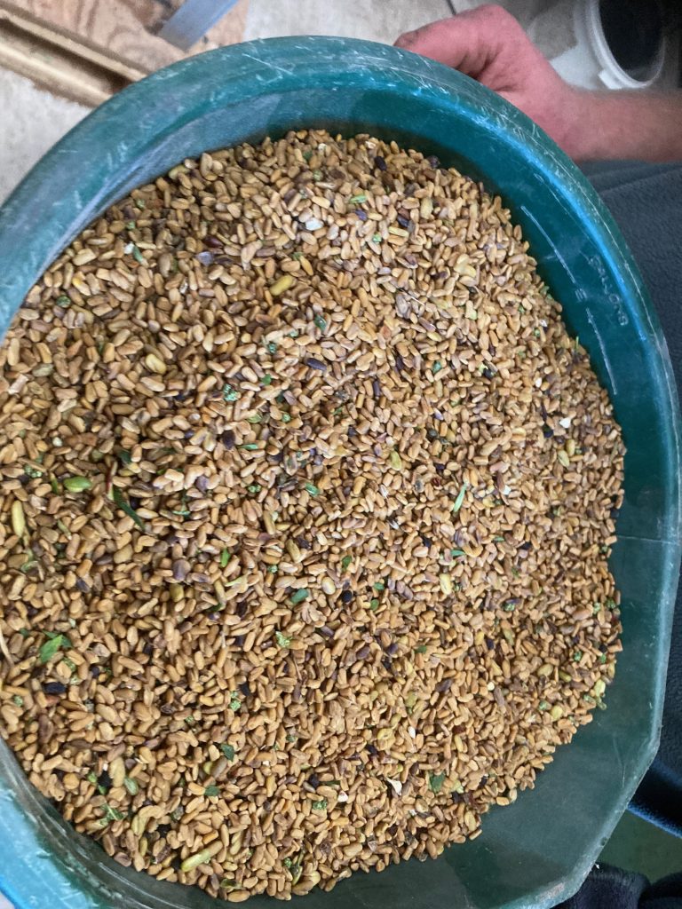 Smaller seed lots, destined for sowing in cover crop mixes, have been run over our newest purchase, a mini cleaner, which although quite slow, does a very useful job.  A couple of weeks ago we harvested a small plot of what was supposed to be Fenugreek seed, which produced rather more Fathen than Fenugreek in the combine tank.  As we only had less than half a ton we ran it over the cleaner before drying, and did a creditable job.  Easier than the Phacelia because the seed size difference was greater. We ended up with only around 50 kg of fenugreek, not really a paying proposition.