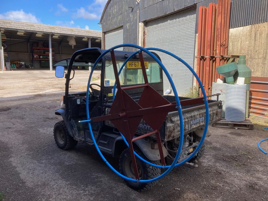 The early finish to harvest this year has enabled us to get on with various other jobs, such as laying on the water supply to new areas of herbal ley, this has involved laying out hundreds of yards of water pipe, and positioning of water troughs so they can serve as large an area of grazing as possible.  Brendan has been busy with this, and it was time to construct a gadget to make the job a little easier.  Unrolling and rolling up water pipe is quite a challenge, especially if you don’t manage to expel all the water first.  The outer wheel is removable, for easy insertion or removal of rolls of pipe.
